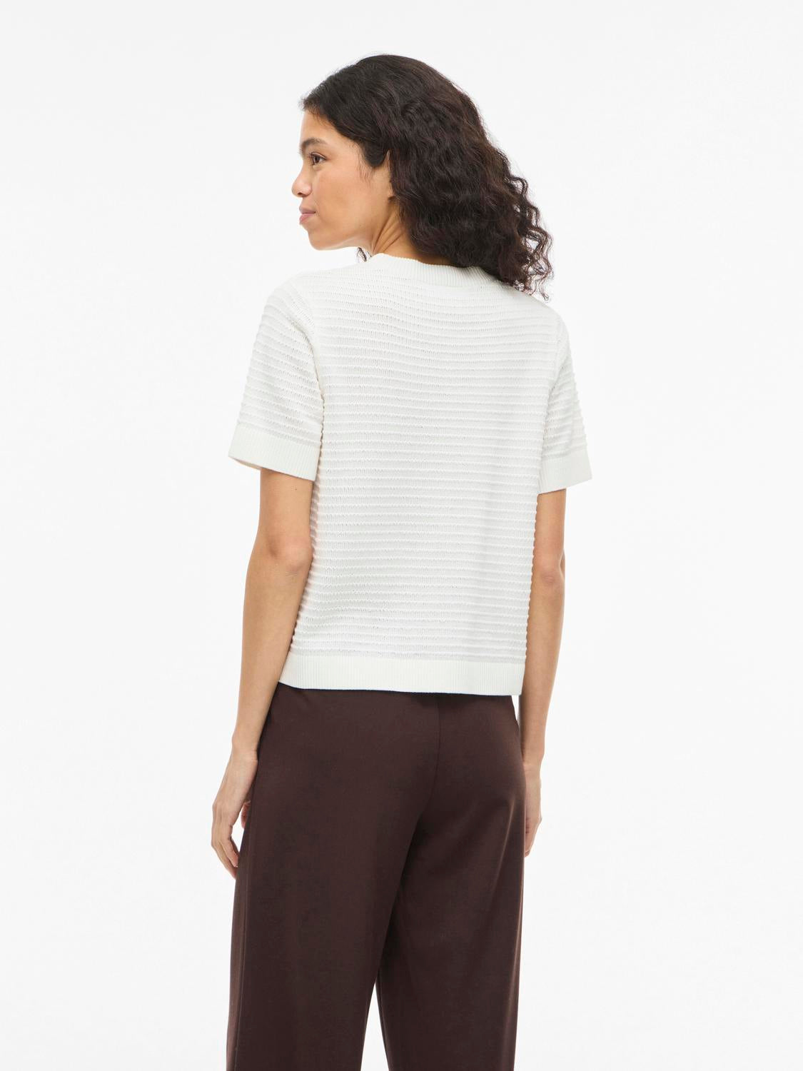 VILOLLO O-NECK S/S DETAIL KNIT TOP- NOOS