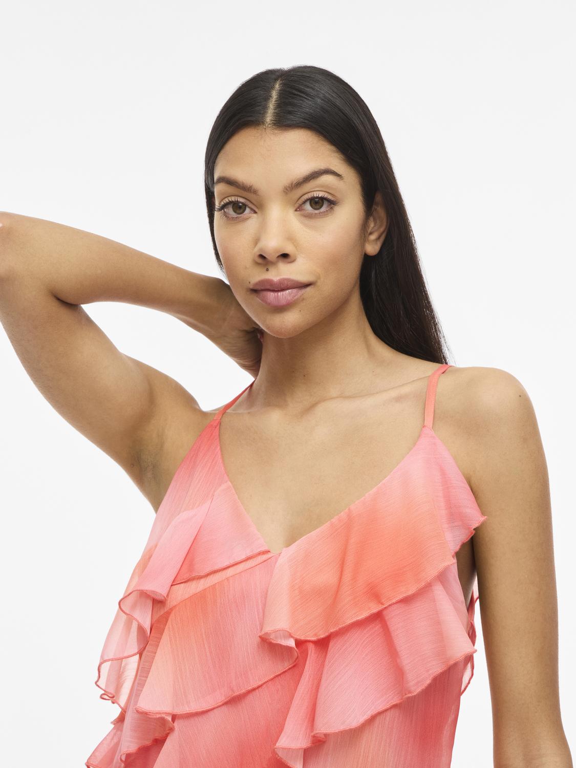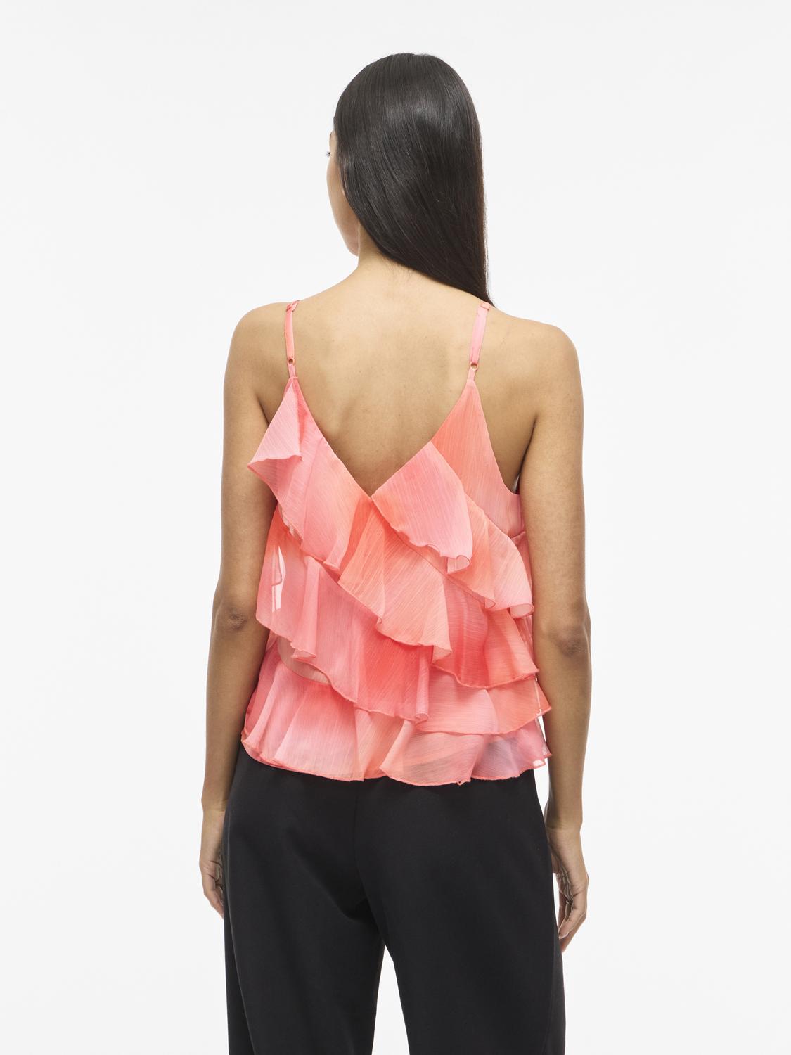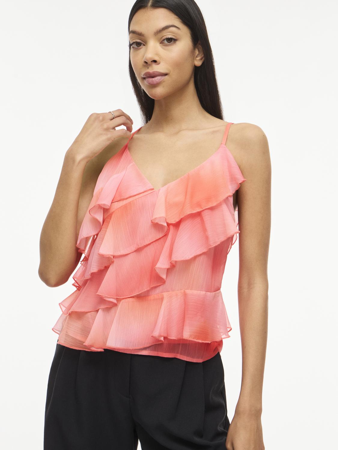 VILUNA V-NECK STRAP RUFFLE TOP/DC/KA